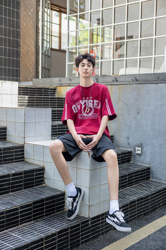 印花字母潮流短袖 紅色
