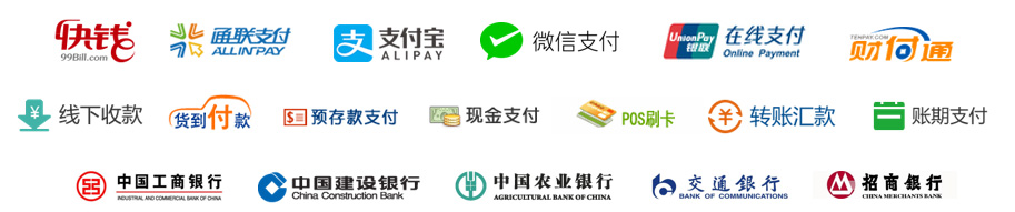 、交通銀行,以及POS刷卡、現(xiàn)金、貨到付款、轉(zhuǎn)賬匯款等線下主流支付方式。