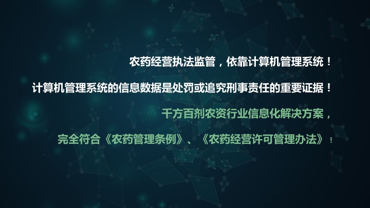 集進(jìn)銷存、財(cái)務(wù),用藥智能服務(wù),執(zhí)法監(jiān)管一體化完全符合《農(nóng)藥管理?xiàng)l例》《農(nóng)藥經(jīng)營(yíng)許可管理辦法》