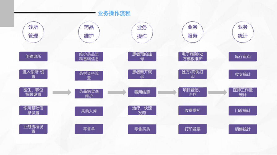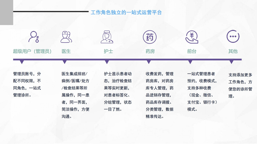 千方云診所是集藥房管理、劃價(jià)收費(fèi)、電子處方、財(cái)務(wù)統(tǒng)計(jì)、中醫(yī)智能診斷等為一體的診所管理軟件。采用云存儲(chǔ)服務(wù),數(shù)據(jù)永不丟失,安全可靠,只需瀏覽器訪問登陸網(wǎng)站即可使用。