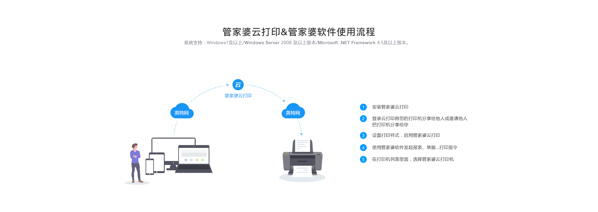 不同的windows系統(tǒng)之間,不同的打印機(jī)驅(qū)動之間,只需安裝管家婆云打印,簡單設(shè)置,即可輕松共享打印。